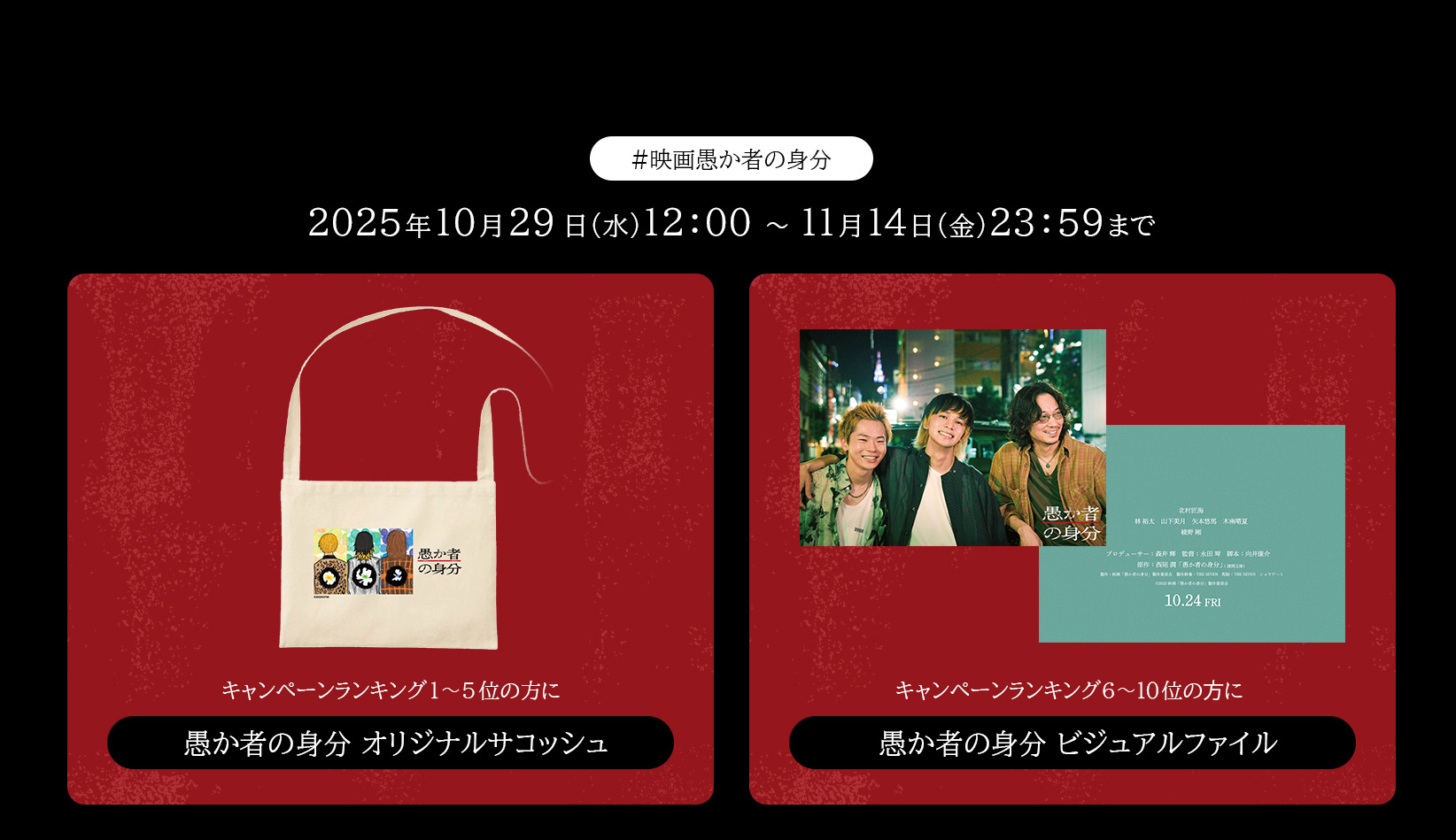 ・映画「愚か者の身分」製作委員会および GOOD SHARE株式会社は、キャンペーンに関して第三者に⽣じたいかなる損害やトラブルについても、⼀切の責任を負いません。